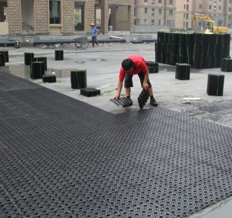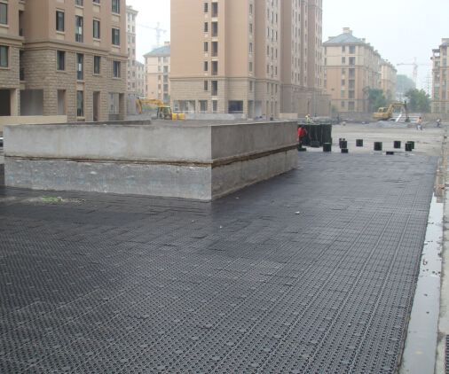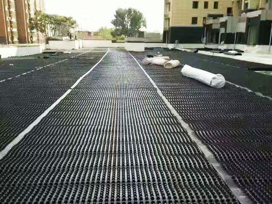 蓄排水板是用PE注塑而成,是集排水、蓄水功能于一体的新型土工材料,同时具备了蓄水、排水、透气、保湿、隔热、防止植物根茎破坏混凝土结构等多种功能。结合土工布一起使用,可以避免细微颗粒堵塞蓄水槽和排水通道,保持排水畅通和空气流通,被广泛应用于园林绿化工程中。