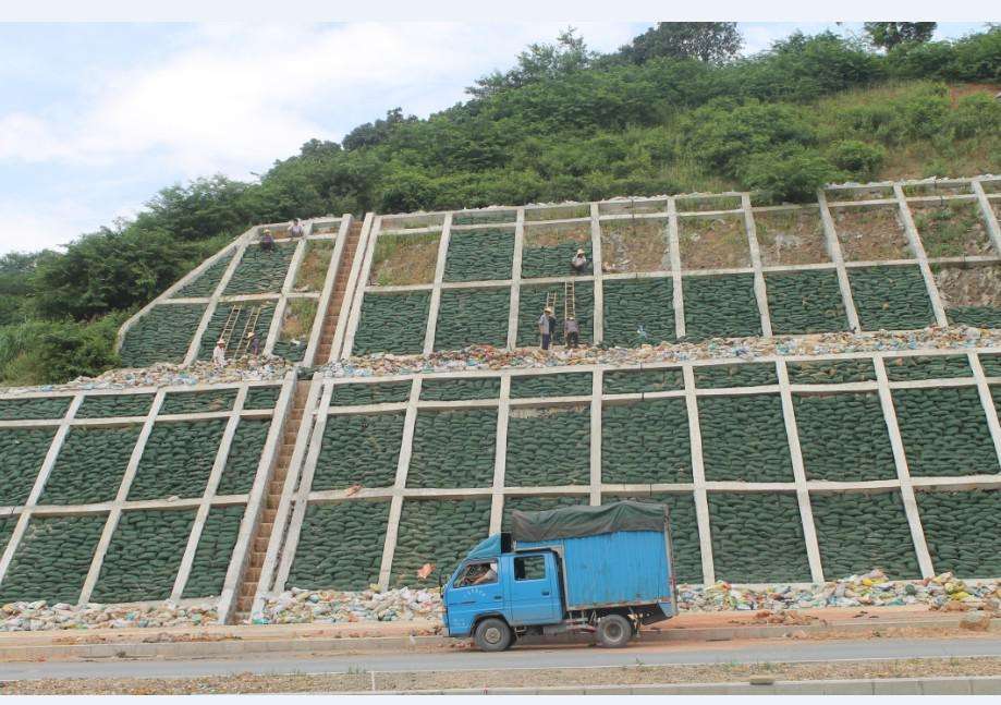 由聚丙烯(PP)为原材料制成的双面烫熨针刺无纺布加工而成的袋子。在充分考虑材料力学、水利学、生物学、植物学等诸多学科要求的前提下,对抗紫外生态袋的厚度、单位、质量、物理力学性能、外形、纤维类型、受力方式、方向、几何尺寸和透水性能及满足植物生长的等效孔径等指标进行了严格的筛选,具有抗紫外(UV)、抗老化、无毒、不助燃、裂口不延伸的特点,实现了零污染。主要运用于建造柔性生态边坡。生态袋边坡防护绿化,是荒山、矿山修复、高速公路边坡绿化、河岸护坡,内河整治中重要的施工方法之一。